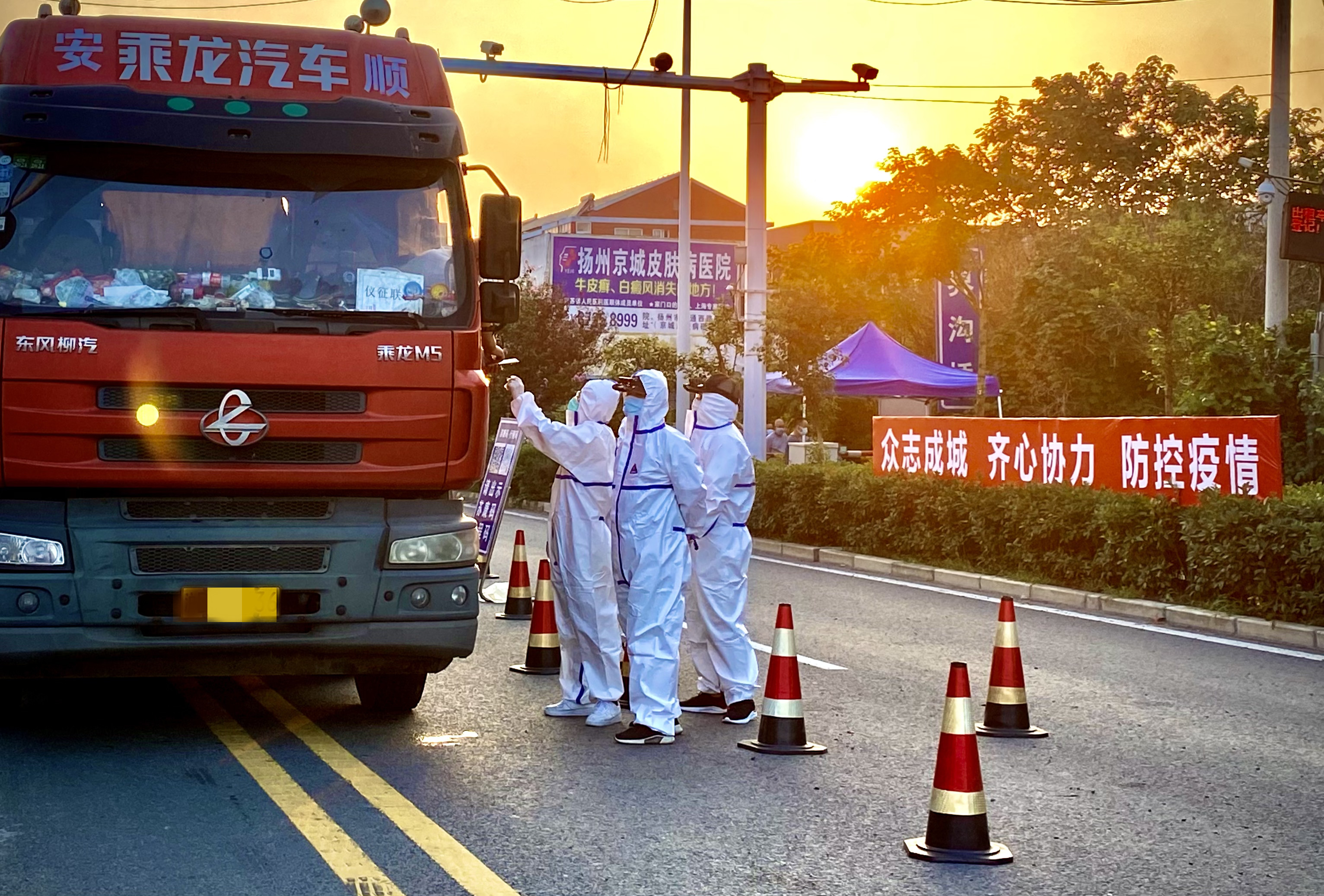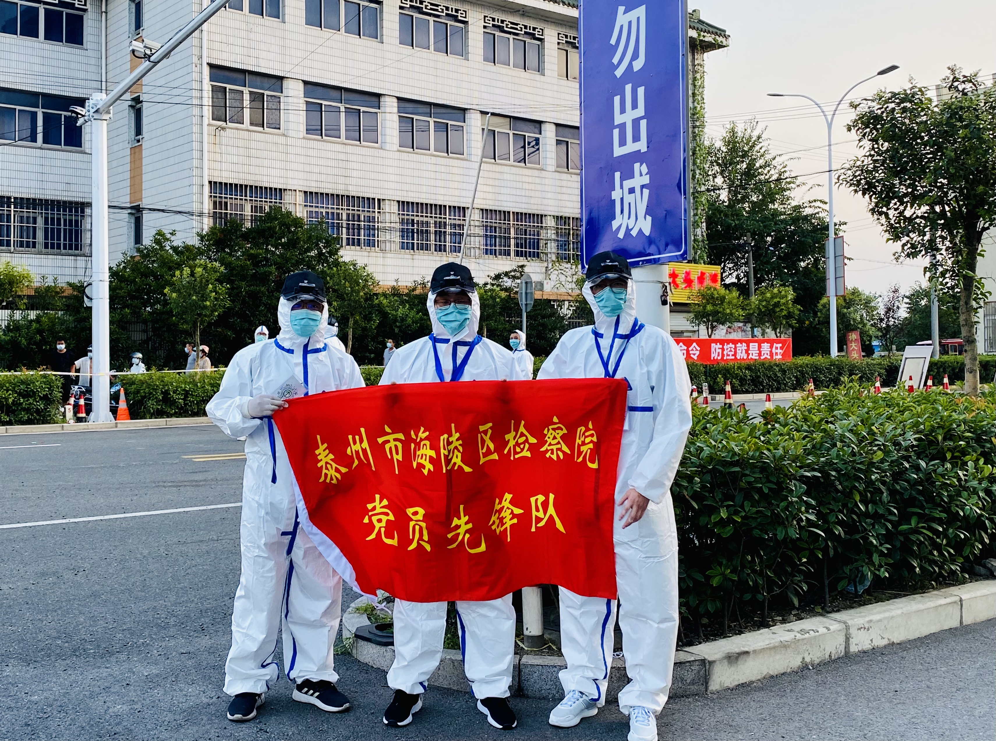 扬泰交界处,区检察院党员干警戴文龙、丁旭乾、费苍昊排查过往车辆,耐心解释政策。由于身穿防护服,熟悉他们的人十米开外根本认不出他们是谁,不熟悉他们的更不知道他们是谁。但是我们都知道,他们为了谁。