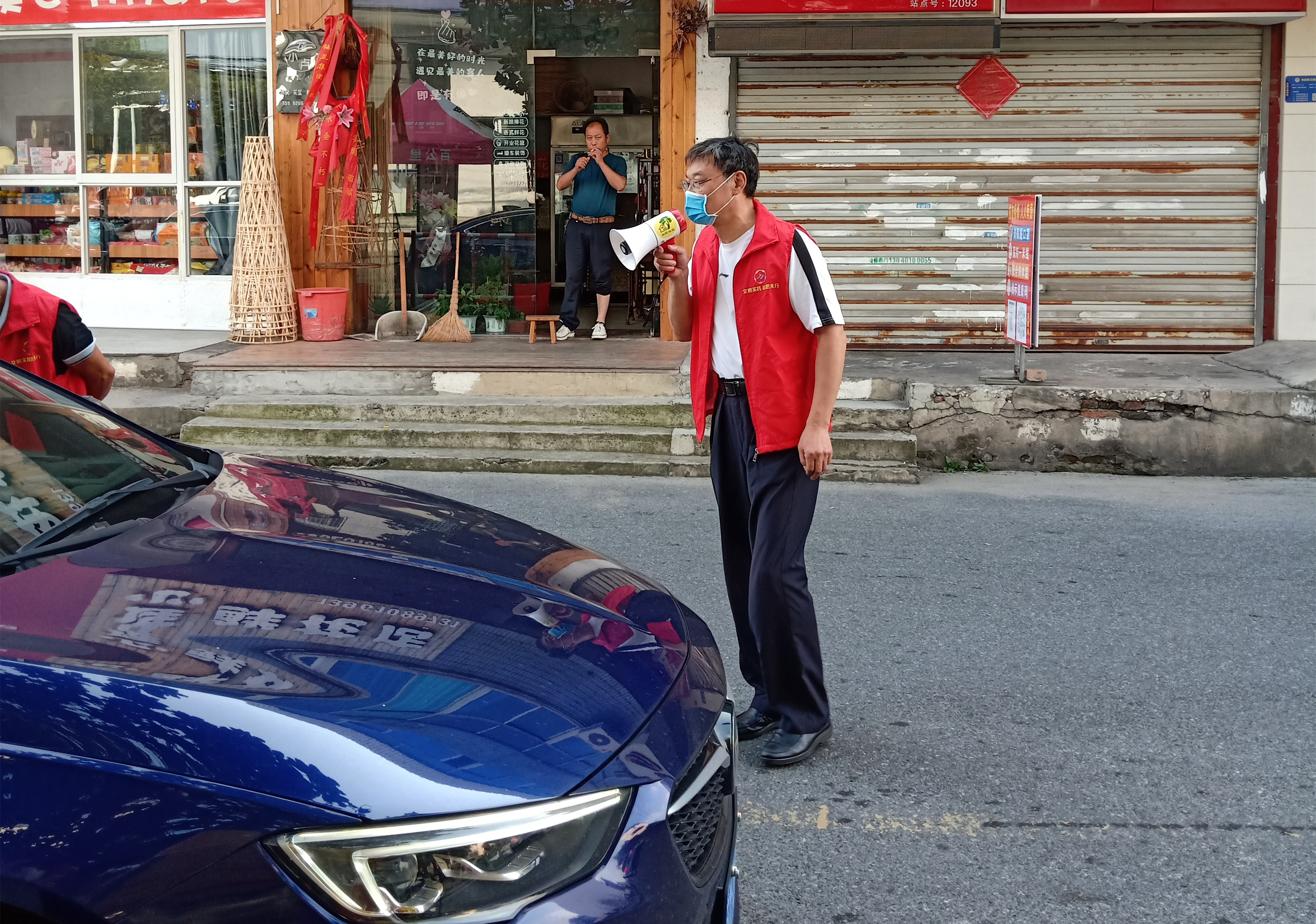 社区门口,检察志愿者们积极配合社区工作,宣讲防疫政策,已然顾不上烈日炎炎,口干舌燥。