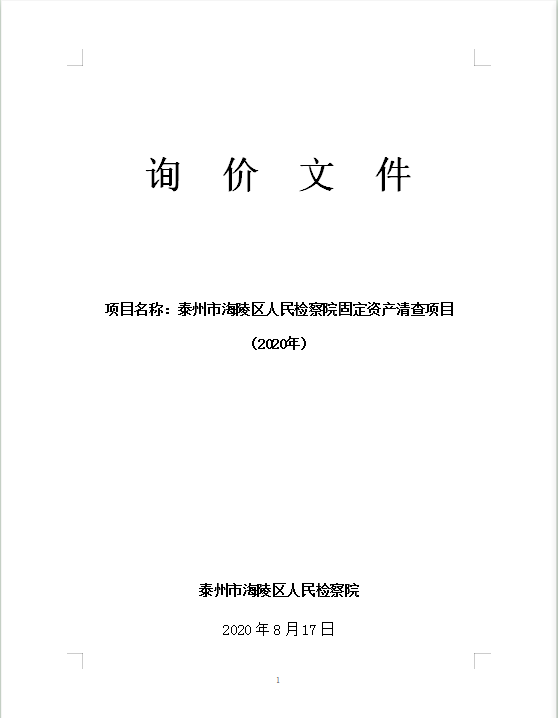 1、询价内容:泰州市海陵区人民检察院固定资产清查项目