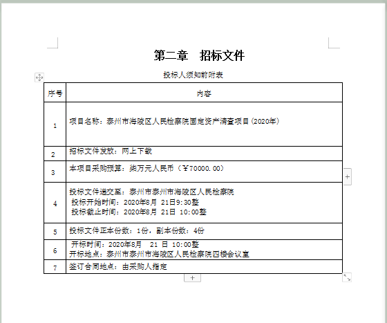 7、项目名称:泰州市海陵区人民检察院固定资产清查(2020)