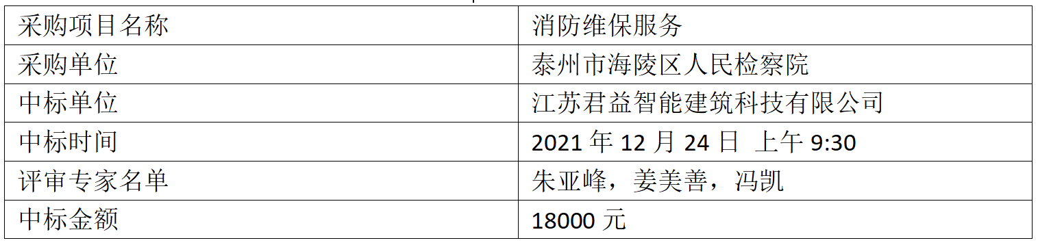 消防维保服务中标公告
