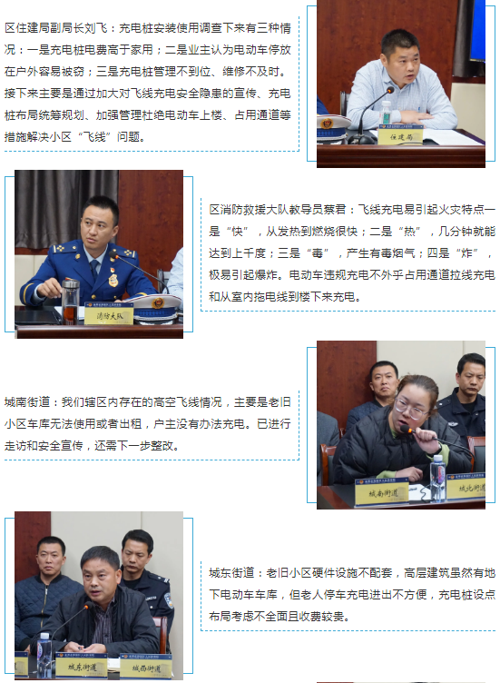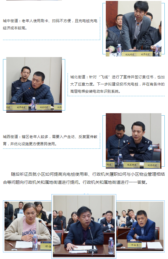 行政机关和属地街道就小区“飞线”充电问题说明了相关情况和监管过程中遇到的困难,就履职中可能遇到的资金技术难题、协调统筹问题作出说明。