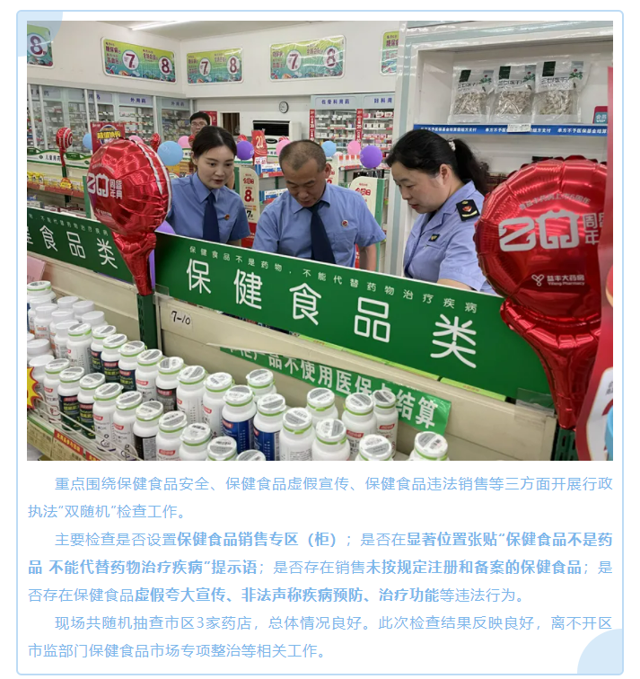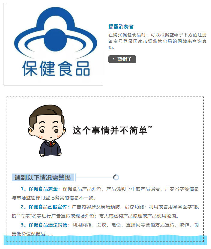 区市场监管局表示,下一步将加大打击保健食品欺诈和虚假宣传等违法行为,进一步规范保健食品经营秩序。同时会继续加强保健食品科普知识宣传教育,提高公众对保健食品市场违法营销的防范意识和防护能力,共同营造放心安全的保健食品消费氛围。