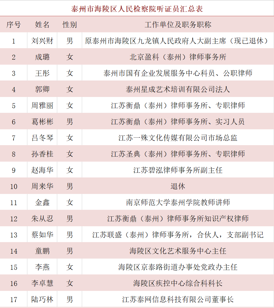 对上述人选如有不同意见,请在公示期内来电或来信反映。电话:86852895。来信地址:泰州市海陵区人民检察院(泰州市东风南路585号) 泰州市海陵区人民检察院2022年7月1日