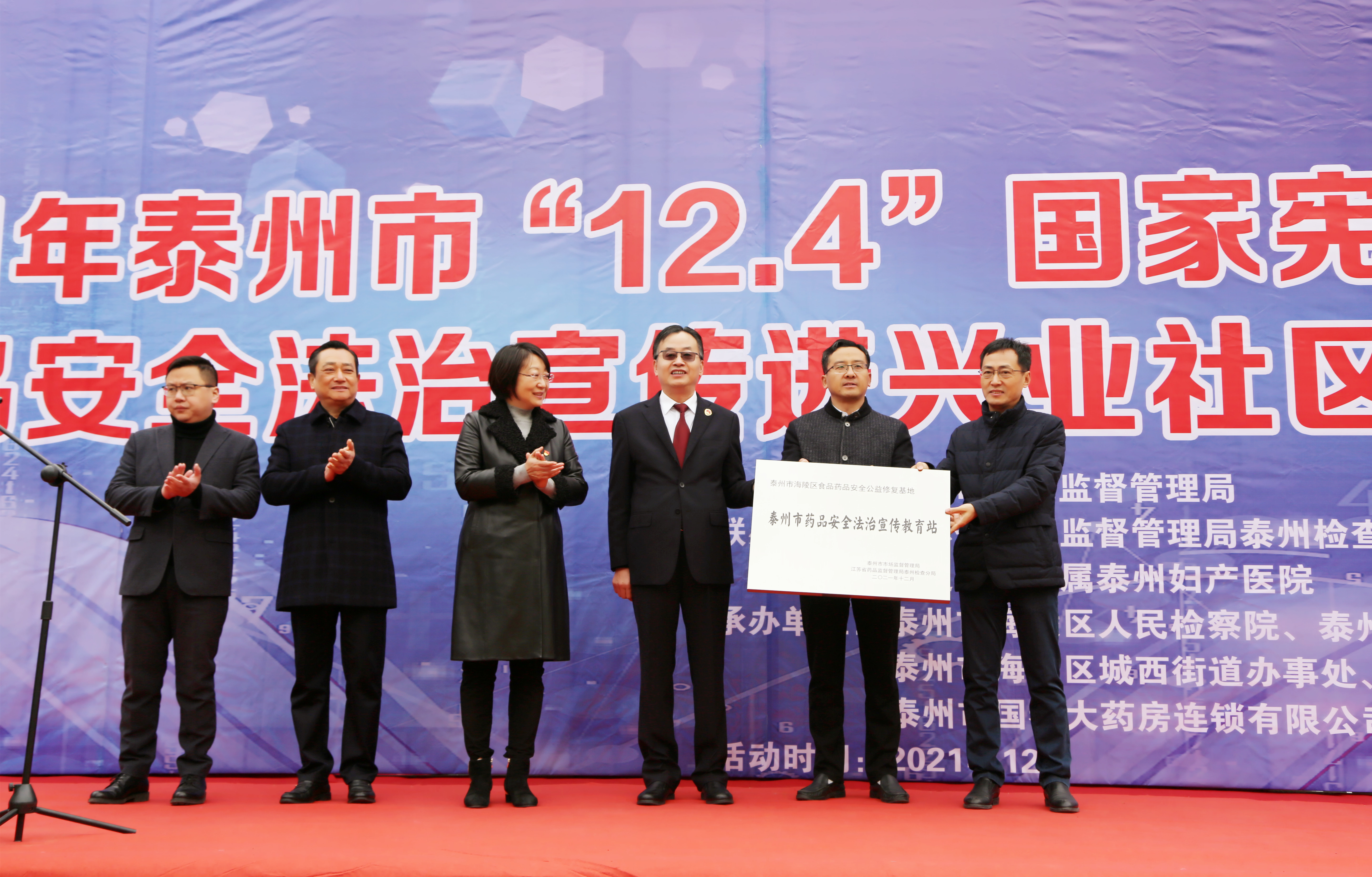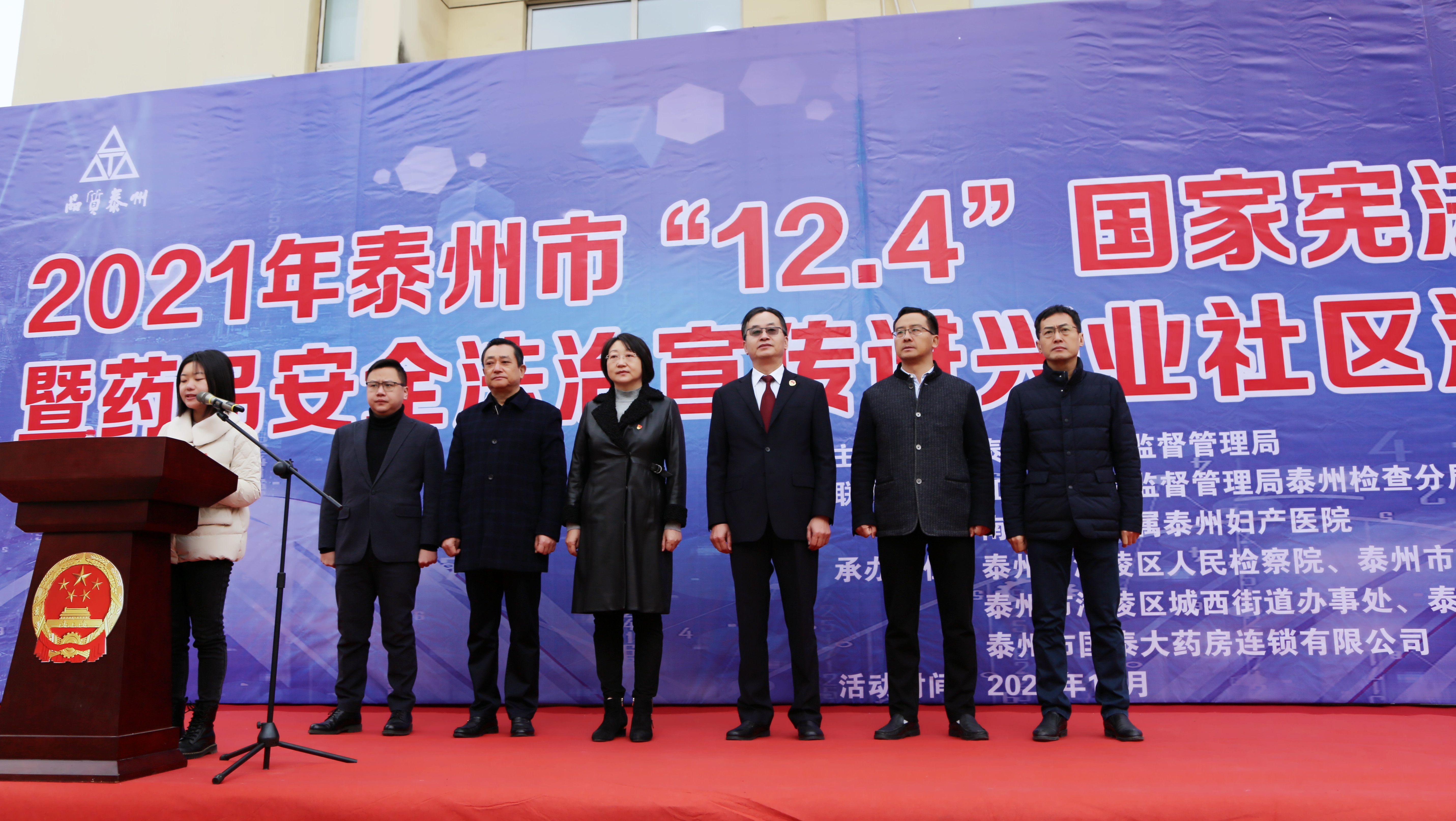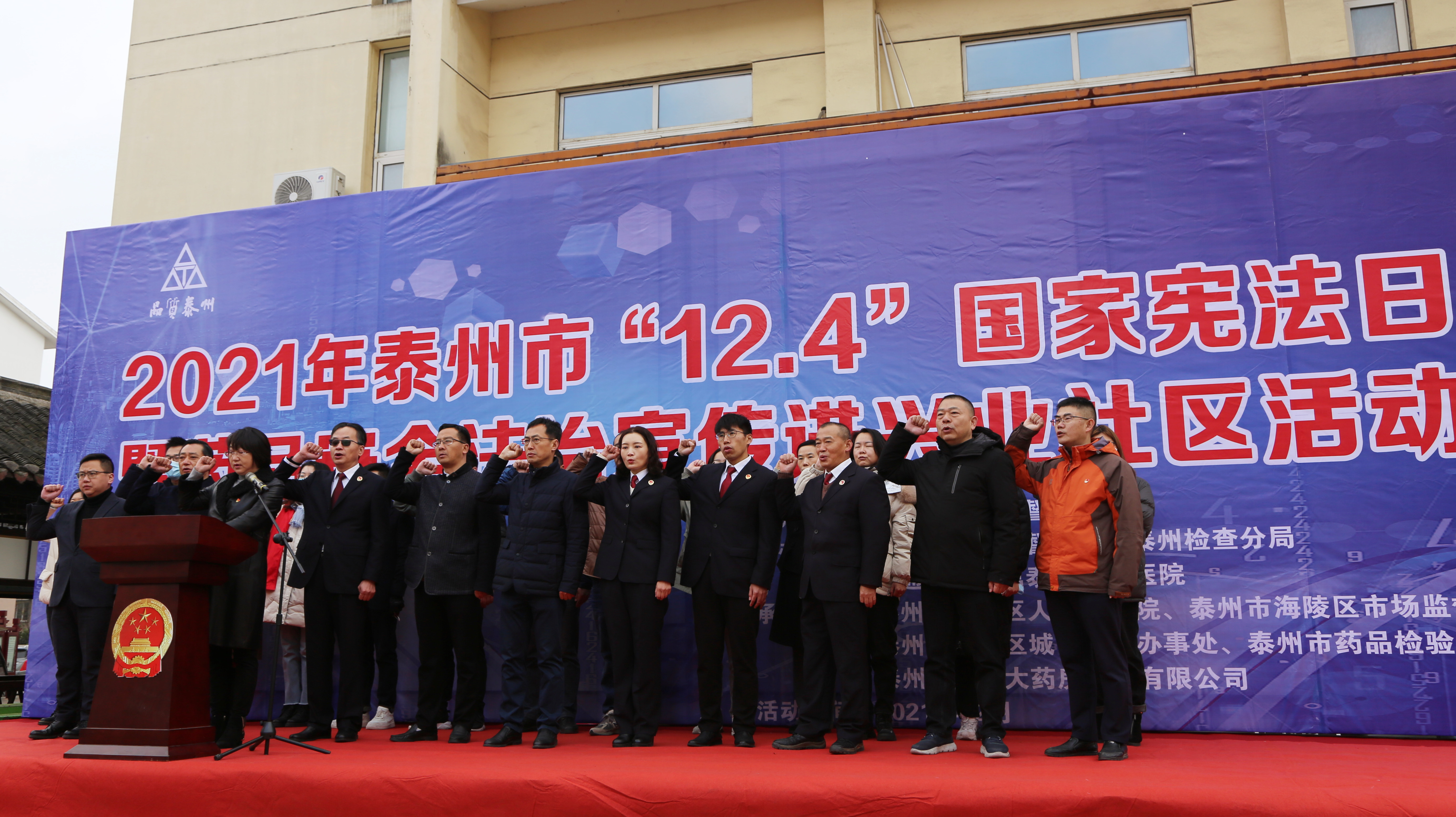 现场,泰州市市场监督管理局、江苏省药品监督管理局泰州检查分局、泰州市海陵区人民检察院、泰州市海陵区市场监督管理局、泰州市海陵区城西街道办事处等单位的国家机关工作人员集中进行宪法宣誓活动。