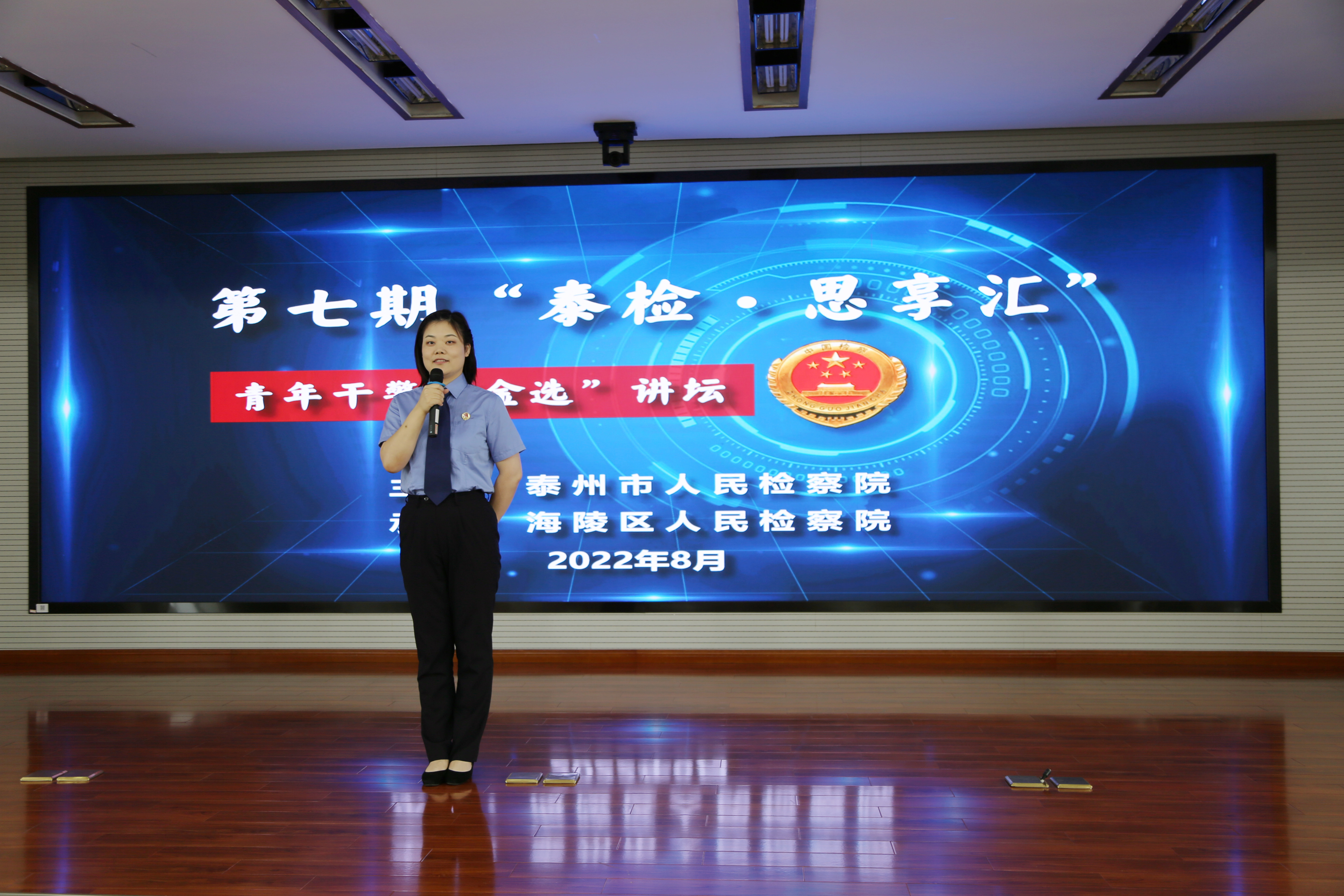 8月29日下午,泰州市海陵区人民检察院承办了泰州市检察机关第七期“泰检·思享汇”暨青年干警“金选”讲坛活动。泰州两级院全体人员参加活动。