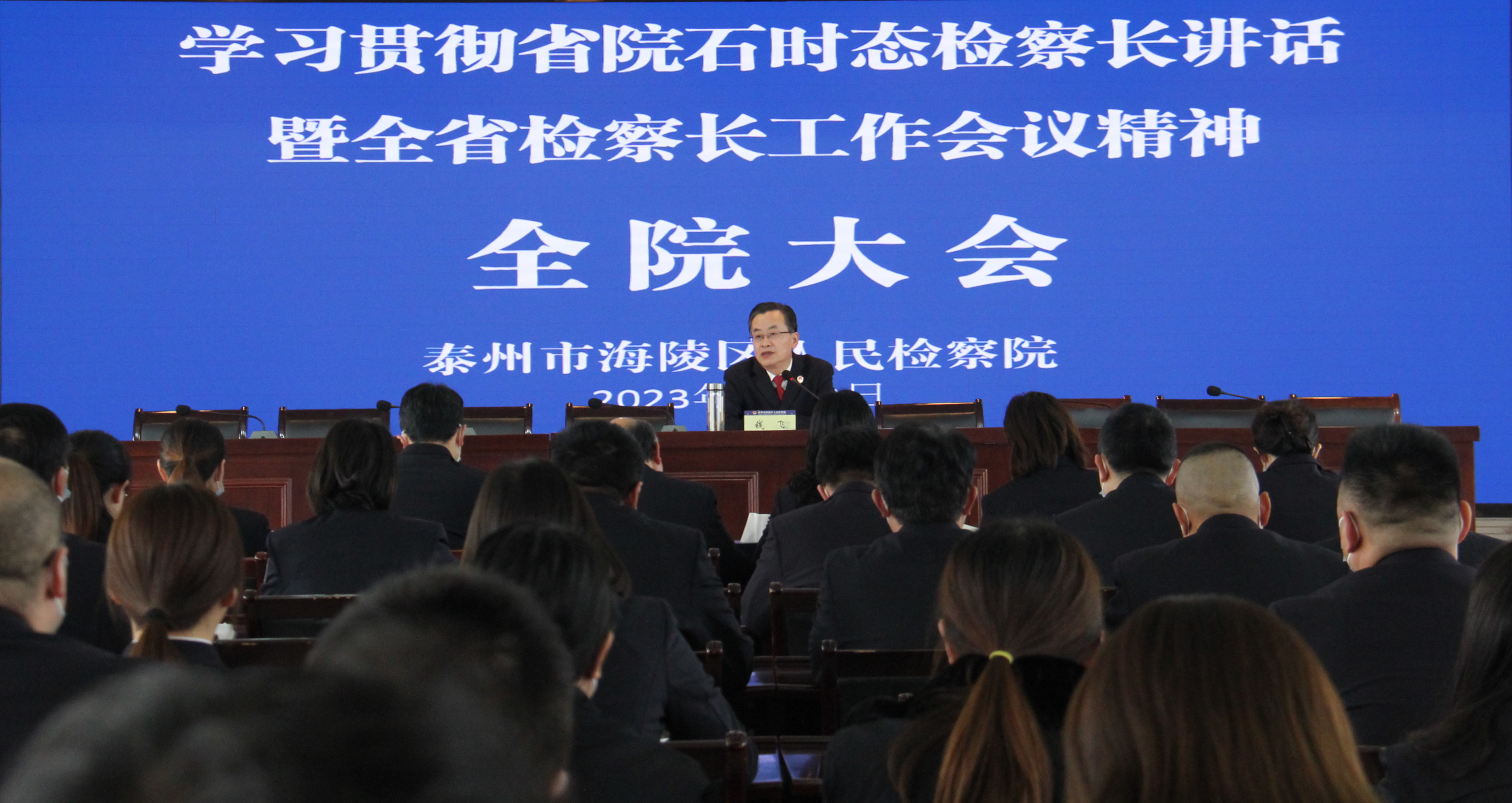 2月8日上午,泰州市海陵区检察院召开全院大会,传达学习贯彻省院石时态检察长讲话及全省检察长会议精神。会议由院党组书记、检察长钱飞主持,全院全体干警参加。会后,该院还向区委、区委政法委主要领导详细汇报了省院石时态检察长讲话精神,以及该院8个方面39项具体落实举措,切实将省院“走在前、争第一”目标和中国式现代化海陵新实践紧密结合在一起。