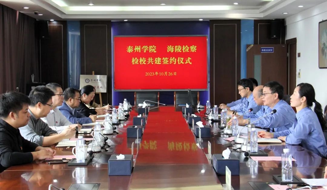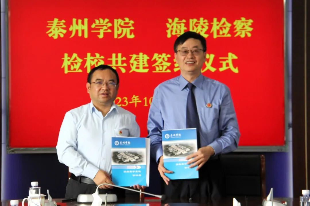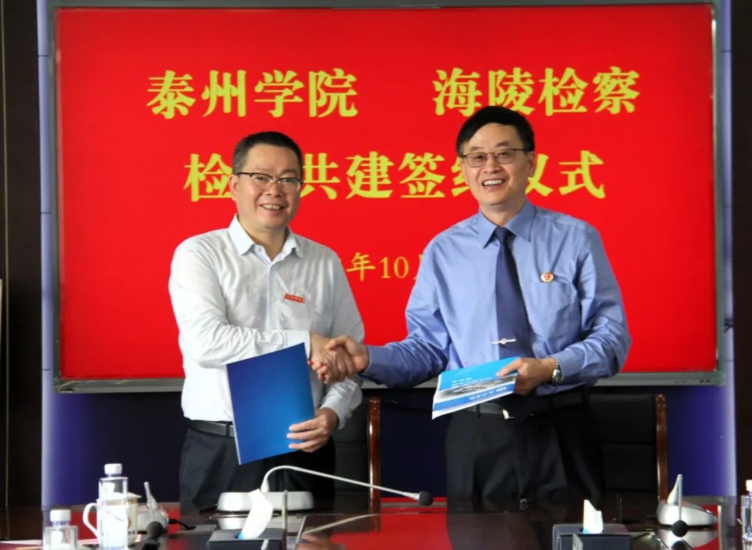 为进一步加强检校共建,建立常态化、制度化检校合作机制,助推法学理论与司法实践深度融合,合力推动法学教育与检察业务资源共享、良性互动、共建多赢,10月26日上午,泰州市海陵区检察院与泰州学院人文学院举行“检校共建”签约仪式。泰州学院人文学院党总支书记李中明、人文学院院长钱成等一行六人,海陵区检察院党组书记、检察长钱飞及院领导班子出席活动。