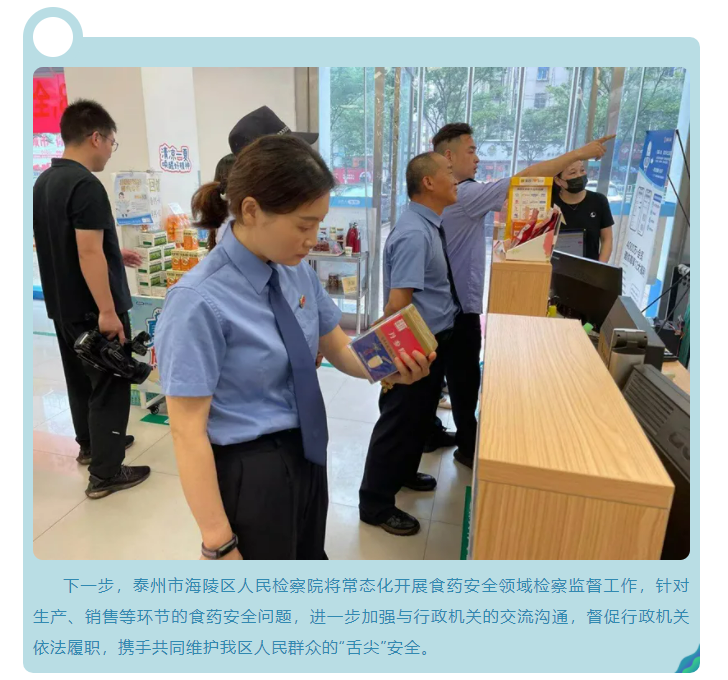 6月18日,泰州市海陵区人民检察院联合泰州市海陵区市场监督管理局开展“保健食品市场专项整治行”。