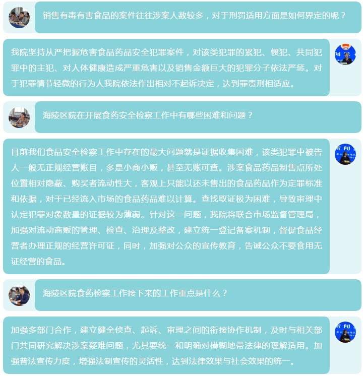 在场新闻媒体、人大代表、政协委员均对海陵检察食药安全工作予以高度肯定,进行现场提问的同时,也提出了宝贵建议,以促进海陵检察食药安全工作更好开展。